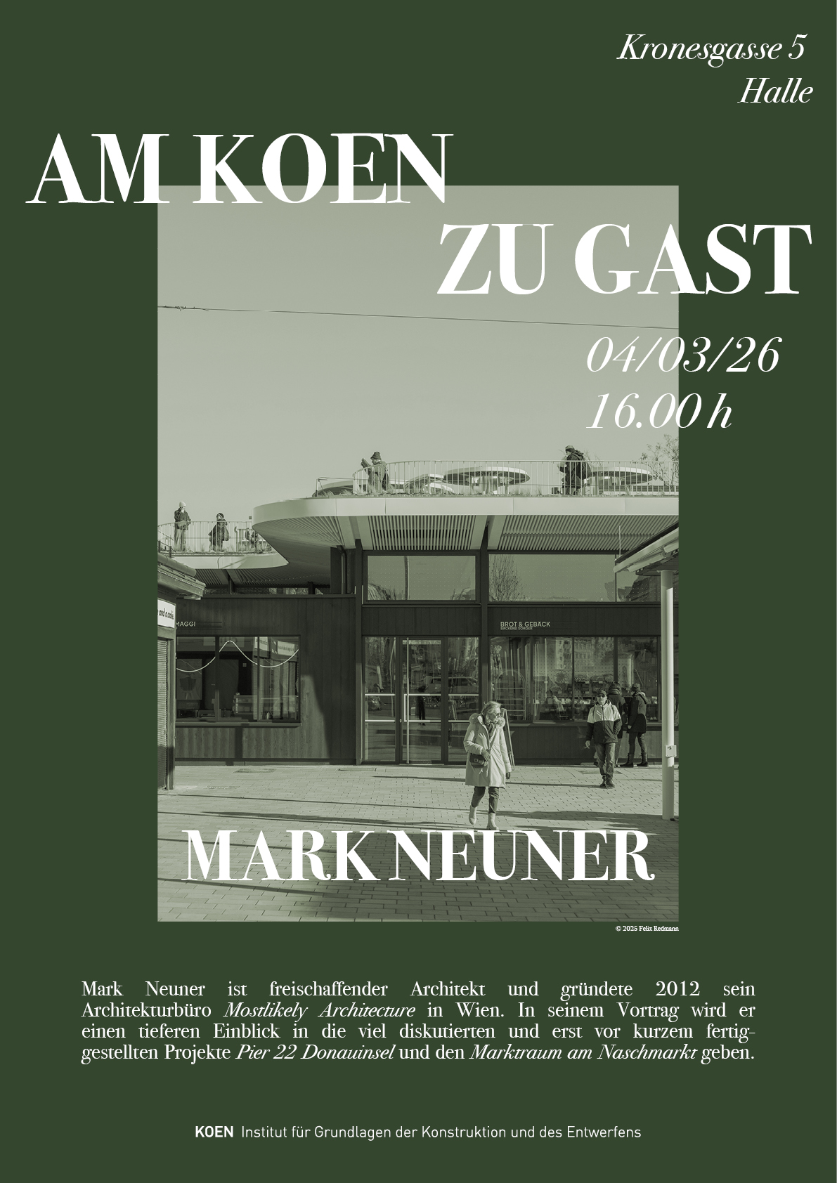 Am KOEN zu Gast: Mark Neuner (Mostlikely) am 4.3.2026 um 16:00 in der Halle / Kronesgasse 5, 1.Stock +